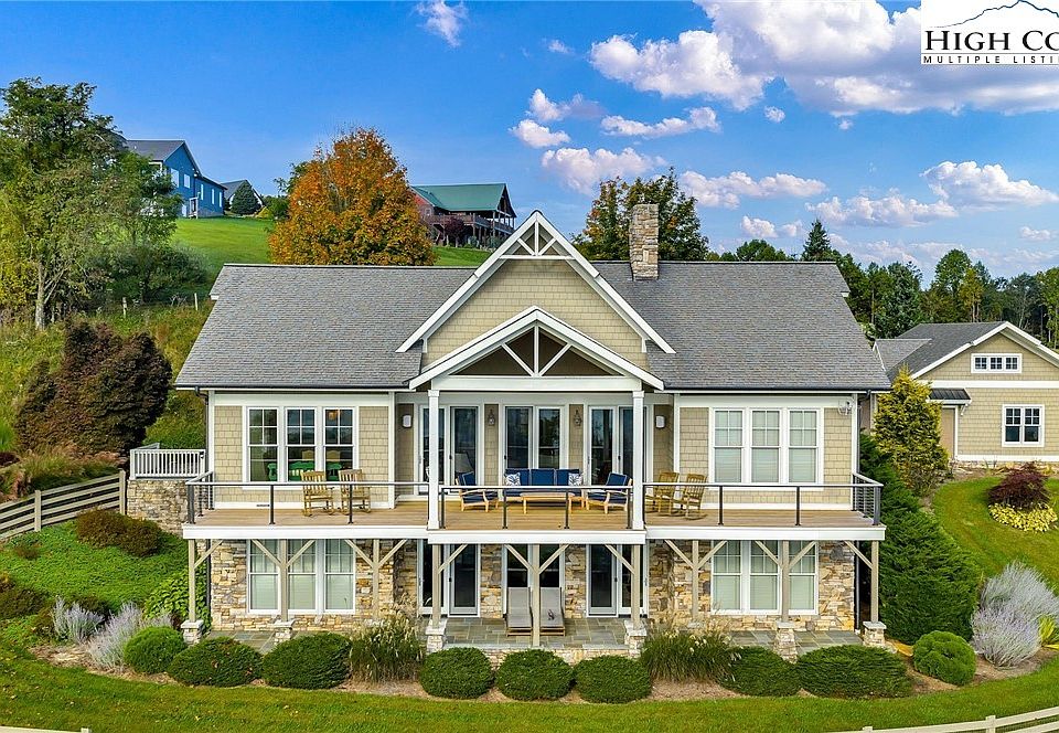 Stunning Custom-Built Home on 11± Acres with Breathtaking Blue Ridge Mountain Views! Situated on over 11± peaceful acres in beautiful Alleghany County, this remarkable custom home captures the perfect balance of mountain charm, craftsmanship, and comfort. Step into the Great Room where a Ponderosa Pine–vaulted and beamed ceiling, beautifully crafted stone wood-burning fireplace, and a wall of windows invite you to take in sweeping Blue Ridge Mountain views. A full-length deck extends your living space outdoors—perfect for relaxing or entertaining while surrounded by nature’s beauty. Throughout the home, you’ll find exquisite details including hand-hewn hardwood floors, custom-milled 8' doors, and locally crafted cabinetry. The open-concept kitchen is a chef’s dream, featuring leathered granite countertops, high-end appliances including a Sub-Zero refrigerator and Viking gas range, and beautifully finished custom cabinetry. The adjoining dining area flows naturally for family gatherings and takes full advantage of the breathtaking views. The spacious primary suite is located on the main level and offers built-in storage and a luxurious en suite bath with marble countertops, a walk-in shower, and a garden tub. Downstairs, a cozy den with a gas log fireplace provides an ideal space for a family room, office, or guest retreat, along with two bright bedrooms—each taking advantage of the mountain views and with its own private bath. Enjoy the crisp mountain air from the expansive deck or stone patio, and take advantage of the oversized detached two-car garage for vehicles, hobbies, or storage. Located just minutes from the Blue Ridge Parkway, the Little River, stocked trout streams, and the charming town of Sparta, NC—this extraordinary property invites you to experience the serenity, craftsmanship, and timeless beauty of life in the Blue Ridge Mountains.