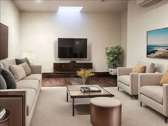Step into a light-filled space featuring soaring ceilings, gleaming hardwood floors, and skylights that bathe the apartment in natural sunlight. The open layout is perfect for both relaxing and entertaining.
