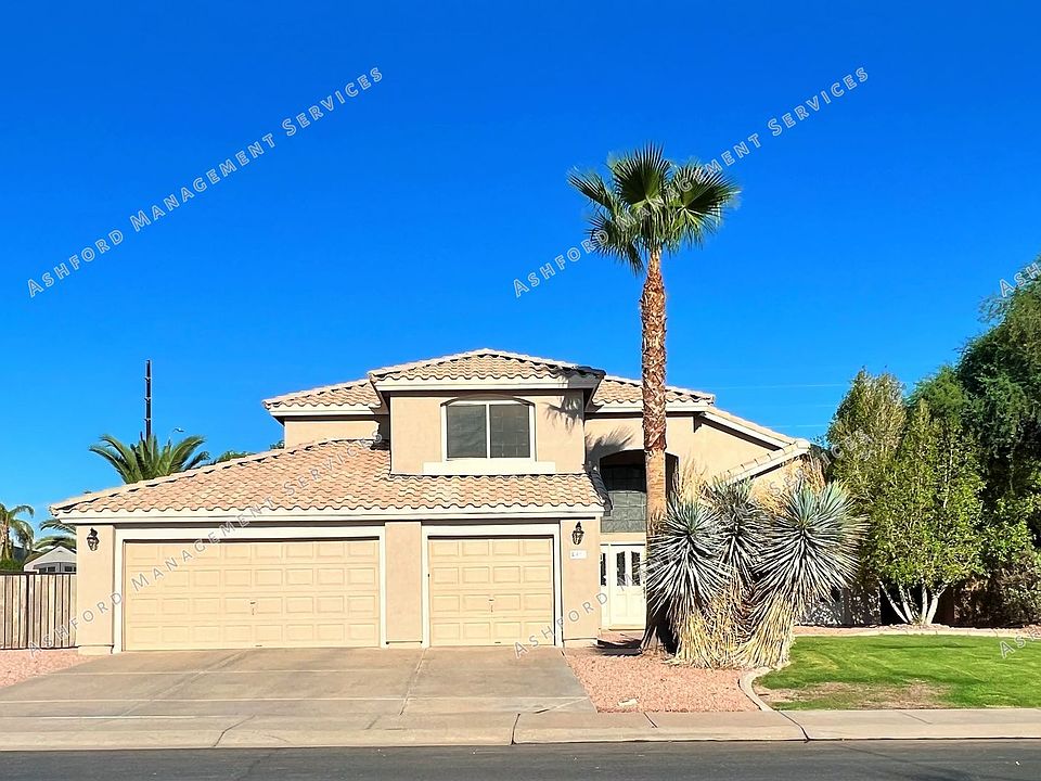 Welcome to Ray Ranch, a stunning 4-bedroom, 3-bathroom home located in desirable Chandler. This spacious house offers a variety of amenities that are sure to impress. Step inside and be greeted by a formal living room and dining room with soaring ceilings, perfect for entertaining guests or hosting family gatherings. The family room provides a cozy space to relax and unwind, while the eat-in kitchen with a kitchen island is ideal for casual meals. The kitchen also features a greenhouse window, allowing for an abundance of natural light. All kitchen appliances are included, making moving in a breeze. Vaulted ceilings and window blinds throughout add a touch of elegance to the home. The inside laundry room comes complete with a washer, dryer, and built-in cabinets for added convenience. With a full bathroom downstairs and lots of storage space throughout, this home offers practicality and functionality. Upstairs, you'll find a guest bathroom with double sinks, ensuring everyone has their own space. The double doors lead to the master suite, which boasts a large walk-in closet and a master bathroom with a separate soaking tub and walk-in shower. The master bathroom also features double sink vanities, providing ample space for getting ready in the morning. Ceiling fans throughout the home help keep you cool during the warmer months. Outside, you'll find a pool and spa, perfect for enjoying the Arizona sunshine. The large yard offers plenty of space for outdoor activities. 3 car garage. Pool and landscaping service included!