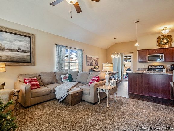 - Ceiling Fan(s), Eat-in Kitchen, Kitchen Island, Main Level Primary, Mud Room, Open Floorplan, Split Bedrooms, Cable TV, Utility Room, Vaulted Ceiling(s), Walk-In Closet(s)