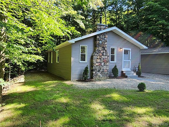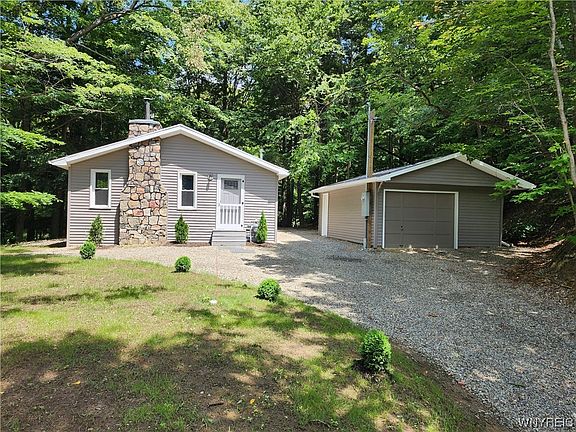 Welcome to this beautiful quality built ranch home completely updated inside and out that is nested in the woods. Wonderful views surround you, as you enjoy nature all around. Charming home features 2 bedrooms, 1st floor laundry. Brand new appliances included - range,refrigerator and microwave, along with a washer and dryer. Stunning wood burning stone fireplace in the living room. Large kitchen, with pantry recessed lighting,and laminate flooring. Bath offers W/I shower and tile floor. Detached garage with metal roof. Septic, gas lines and electrical are all newer. Home and garage have maintenance free vinyl siding. All new windows. R30 insulation. Spray foam insulated walls. Absolutely nothing to do, but to unpack your belongings. Crawl space area has an ice shield, and lighting. Great location near skiing, In the heart of Colden. A must see. Showings start Friday, July 28th at 12pm.