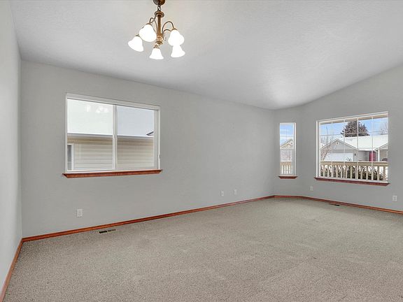 Charming Low-Maintenance Rancher in 5 Mile Prairie – Mead School District! Welcome to this beautifully maintained 3-bedroom, 1.75-bath rancher in the sought-after 5 Mile Prairie neighborhood, just off Strong Rd. Enjoy west-facing sunset views from the charming front porch. Inside, vaulted ceilings and abundant natural light create an inviting space. The kitchen features an island with eating bar, pantry, ample storage, built-in microwave, and dishwasher. A spacious dining area offers room for a large table plus additional flex space. A slider leads to the fully fenced backyard with white vinyl fencing, sprinkler system, and concrete patio. This 1,436 sq. ft. home has a no-step entry, & updated paint and flooring throughout. The primary suite includes a walk-in closet and private ¾ bath with double sinks. Additional features: gas forced air heat, central A/C, two-car garage with opener, and washer & dryer included. Built in 2010 and move-in ready! Beat the Spring rush & schedule to view it today!