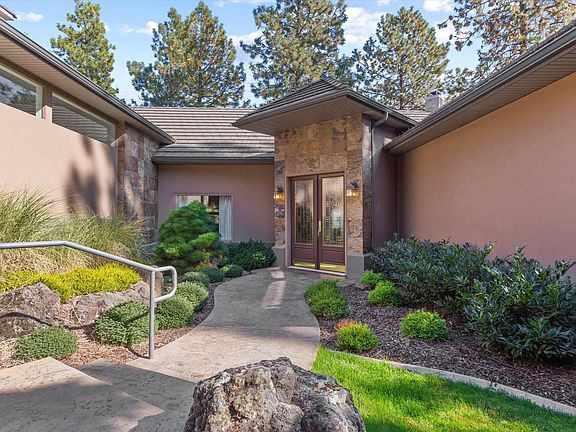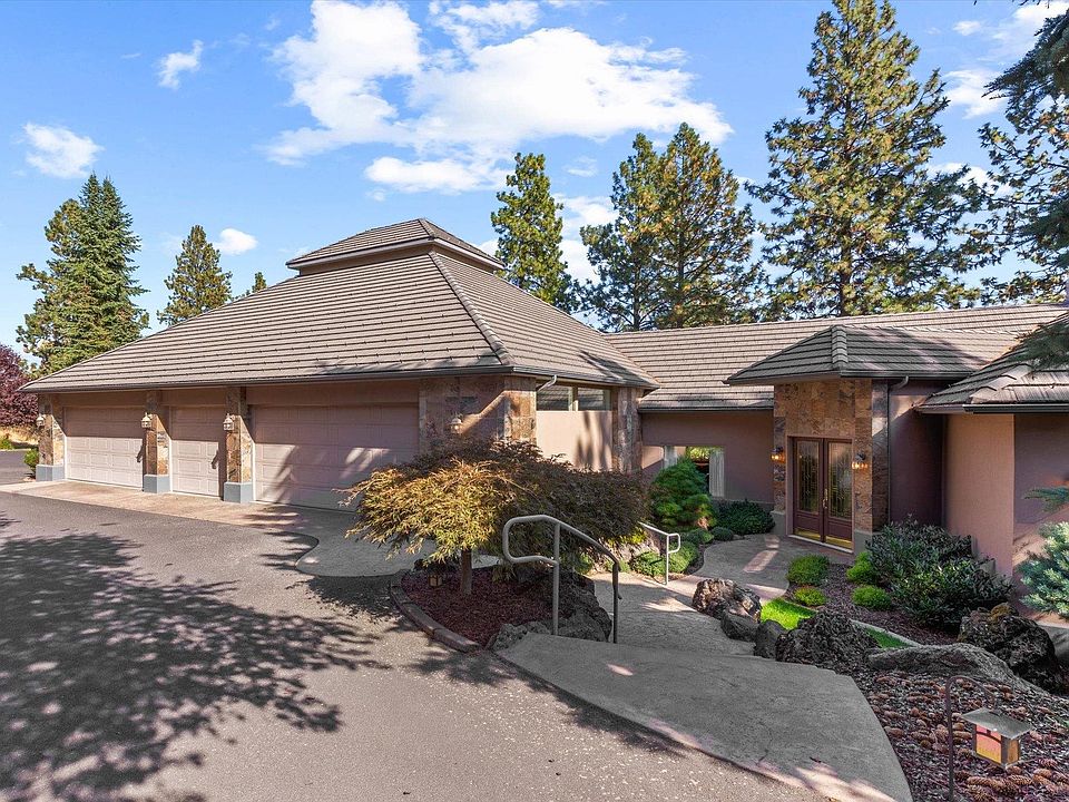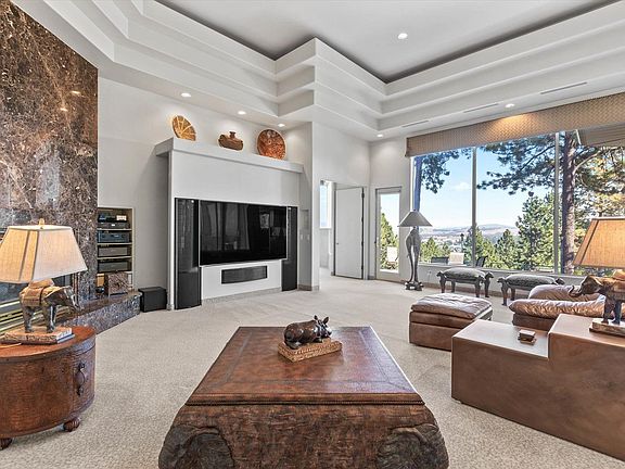 One-of-a-kind custom built with spectacular views. Private estate home perched upon the East side of the 5 mile bluff. The view is a combination of trees, lights and mountains in the distance. Sprawling ranch-style home with large gathering spaces. Living room features a double-sided rock fireplace . Spacious great room with a wall of windows and room for all. Kitchen with high end cabinetry and appliances. Formal dining area. Main floor features two primary bedroom suites. Main floor laundry room. Lower level includes a bedroom en-suite plus two additional bedrooms and full bathroom. FIVE-car attached garage! Meticulously maintained landscape. Entertainment deck to relax and enjoy nearly 2 acres of seclusion, just a few minutes from shopping and restaurants. Sought after Mead school district.