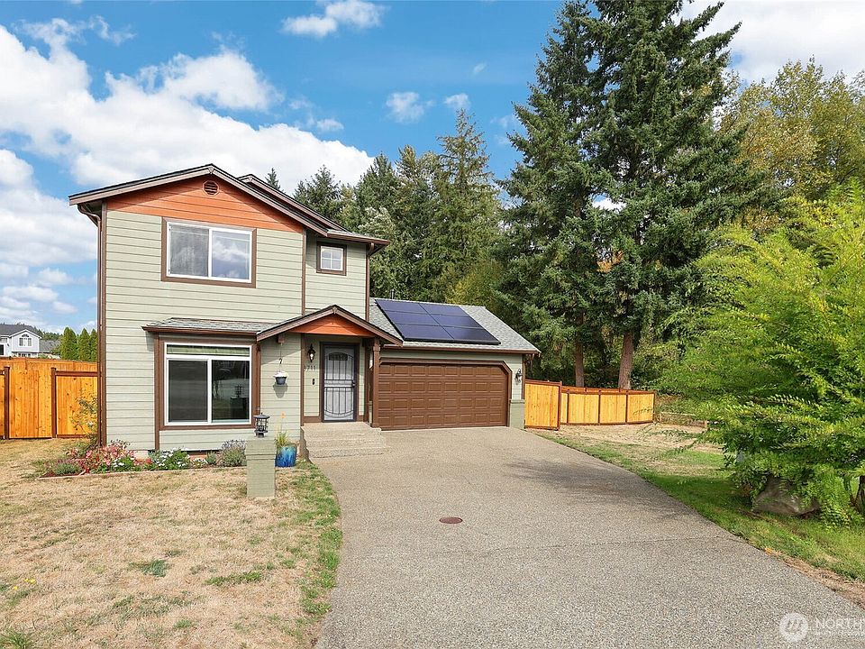Spacious 2-story home on a cul-de-sac with thoughtful updates throughout! Remodeled kitchen with modern finishes opens to the dining area with French doors. Fresh interior paint and bamboo flooring create a warm, inviting feel. Upstairs, the primary suite features vaulted ceilings and a full bath. Enjoy the skylit sunroom and a private, fully fenced backyard with new fencing on a large lot, perfect for entertaining. Energy-efficient upgrades include a smart panel and solar panels. With 3 bedrooms, 2.5 baths, and over 1,700 sq. ft., this home combines comfort, style, and efficiency in a prime Spanaway location.