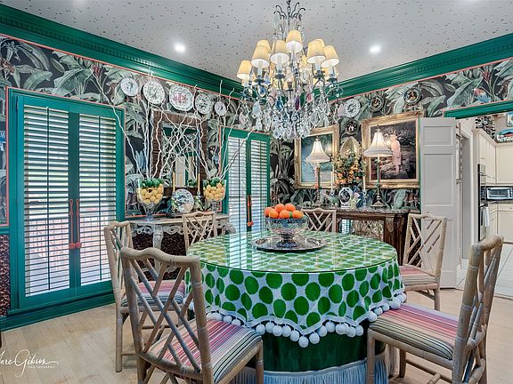 Distinctive, dynamic and filled with heart, this locally featured residence is one of Shreveport’s most cherished homes. Nestled within the prestigious Spring Lake neighborhood, this iconic 4 BR, 3.5 BA designer showroom home blends architectural character, warmth and modern luxury in perfect harmony. Entered via a graceful bridge walkway, the home captivates immediately with vaulted ceilings, abundant natural light and artful interiors that balance sophistication and comfort. The main level is ideal for entertaining, featuring a formal dining room adorned with bold jungle wallpaper, custom built-ins and elegant crown moulding with classic dental detailing that continues into the foyer, where mural wallpaper creates a striking and welcoming statement of artistry and style. Well-appointed powder room. The gourmet kitchen features two islands, stainless steel appliances including a Viking range, gas cooktop, double ovens, custom wine storage, icemaker, and opens to a charming breakfast room with built-in storage. The living room, enhanced by wall paneling & a cozy fireplace, flows seamlessly to a double-level rear patio—the upper level screened for year-round enjoyment & the lower level open for gatherings or quiet time, open to the fenced rear yard. Private primary suite on the main level serves as a serene retreat with a luxury bath featuring a soaker tub with marble surround, sleek tile, designer lighting, an oversized shower, a water closet with Schumacher Cloud Toile wallpaper & a custom walk-in closet. All bathrooms have been luxuriously remodeled. The split-level design enhances versatility with a fully renovated lower level offering 3BR, 2BA, a spacious living room & a workout room or office, ideal for children or guests. Plantation shutters & custom draperies add an elegant finishing touch. Beyond its remarkable design, this home holds a special place in Shreveport’s story—a residence that has seen generations of families, laughter & countless memories.