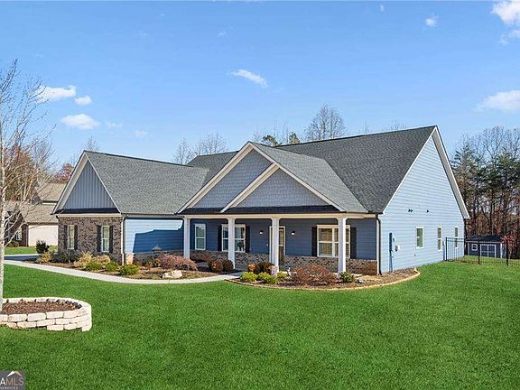 Built in 2021 this 2,800 sq ft ranch on 1 acre with fully fenced in backyard in the highly sought-after North Hall School District is ready for you to call it home! This spacious 3-bedroom, 2.5-bath split floor plan offers true open-concept living with a formal dining room, welcoming foyer, and a large gourmet kitchen featuring a huge island overlooking the family room and cozy sitting room with fireplace. The kitchen features granite countertops, farmhouse white sink, tiled backsplash and pendant lighting. Upgrades include plantation blinds throughout the home along with crown molding throughout the main living spaces and a coffered ceiling in the dining room. The oversized master suite includes a walk-in tiled shower, separate soaking tub, granite double sink vanity and ample walk-in closet space. Enjoy the outdoors with an extended concrete patio with decorative stamping, double gated fenced-in backyard with solar lights along the fence line and a fire pit area perfect for entertaining. Additional features include freshly painted exterior, storage shed, and recent septic service with lift tanks for peace of mind. Move-in ready and well maintained, this home offers space, style, and sought-after schools! Schedule your showing today and start packing!