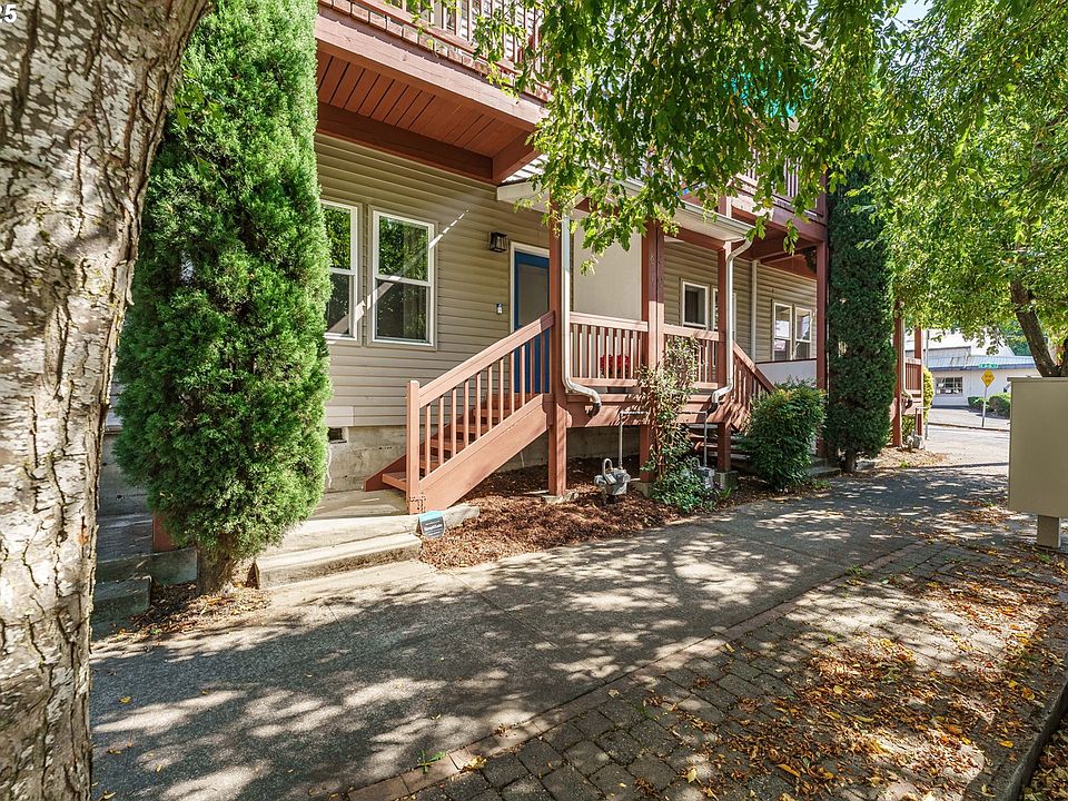 Open House Saturday 12-2. Discover the perfect blend of style, flexibility, and convenience in this 2 bd/3bath townhouse with a versatile bonus den/office space. Just steps from Cathedral Park and the vibrant shops and eateries of St Johns. This is right in the center of one of Portland's most beloved neighborhoods. The entry has a den with tall ceilings, and a full bath allowing for endless options: guest suite or office. New LVP flooring adds a modern touch. The main floor welcomes you with an airy open layout, cozy gas fireplace, and large windows that look the space with natural light. The spacious kitchen boasts abundant counter space and cabinets, flowing seamlessly into the dining area. Step outside to your private deck and take in sweeping territorial views of the iconic St. Johns Bridge and Forest Park. Upstairs, two spacious bedrooms provide peaceful retreats. The primary suite features its own bath, while the second bedroom includes a generous walk in closet. Low HOA and no rental cap, with pet friendly policies this home is as practical as charming. Easy access to downtown Portland, Beaverton, and Sauvie Island makes it an ideal base for work or play. [Home Energy Score = 8. HES Report at https://rpt.greenbuildingregistry.com/hes/OR10010522]