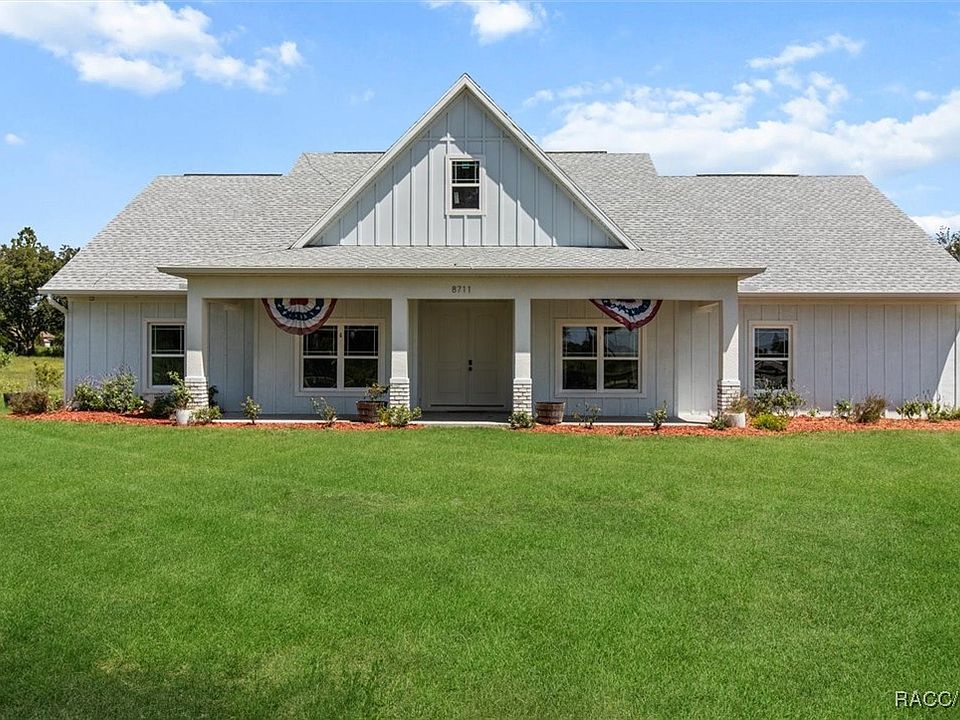 Welcome to your modern farmhouse retreat just outside Crystal River, set on nearly 10 acres of picturesque land! Built in 2022, this charming home features 3 bedrooms plus a versatile office, along with 2.5 stylish bathrooms. Inside, you'll find a harmonious blend of carpet and luxury vinyl plank flooring that adds both comfort and elegance. The heart of the home showcases stunning granite countertops paired with beautiful wood cabinets, creating an inviting space for cooking and gathering. The master bathroom is a luxurious haven, equipped with dual sinks, a spacious walk-in shower, and a classic clawfoot tub perfect for unwinding after a long day. Step outside to explore your expansive, fully fenced 10 acres, ideal for livestock or enjoying outdoor activities. With a dedicated livestock barn and ample space to add a pool, the possibilities are endless. You'll also appreciate the assorted fruit trees that enhance the property’s natural beauty. Located just minutes from the future expansion of the Suncoast Parkway and within an hour’s drive to Tampa, this modern farmhouse offers the perfect blend of rural tranquility and urban accessibility. Don’t miss your opportunity to make this stunning property your own!