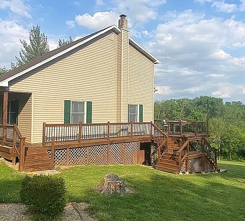 This is country living at its best. Just a few miles outside of Quincy. Easy access to interstate 172. This home is 3 acres of park like setting. There is plenty outdoor seating to take in the views, flowers and wildlife. Out front is a rock stone patio to take in the cool day breezes under the treetops. On the front of the house is an 8 x 28 deck to view the front of the property. The deck wraps around the back to a 12 X 40 deck looking over the backyard into the neighboring field. Step down the double staircase to the lower deck and have another view of the backyard on the 11.6 x 31.6 deck. Behind the lower shed is a garden shed with a brick patio with a Wisteria overhanging on the above trellis. Inside the front door, you walk into the living room with a vaulted ceiling. The open floor plan has a balcony from the second floor overlooking the living room. Just through the living room is the dining room opening up to the kitchen with plenty of cabinets and granite countertops. This house has its own pantry closet and broom cabinet. This house does not disappoint with so much storage areas. The dining room has a view to love walking out onto the upper back deck. Plenty of room to entertain and barbeque on this deck. Master bedroom has new carpet with a walk-in closet. Next to the master bedroom is the main bathroom of the home with new luxury vinyl flooring. Speaking of entertaining step down to the basement into the family room with new carpet on the staircase and luxury vinyl throughout the lower level. From the family room come on into the entertainment area with a bar and walk out to the lower back deck. In addition, the basement has an office or non-conforming bedroom. Laundry is located in the basement and the house has a brand new water softener, gas furnace and air conditioner. Off the family room is a large storage area with shelving and below the staircase is another storage area, which has a rough in for a bathroom. Upstairs you have two large bedrooms with a full bathroom between them. The East bedroom has an attic area for storage. For that hobbyist who just needs a cool garage this one is for you 42 x 48 with 12 ft. ceilings and heated floor. More than enough room to work on those projects or just store your toys. This home and property offers so much you must come see. Call Russ at (217) 434-8009 or Rhonda at (217) 430-5105 for set up an appointment.