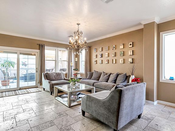 This beautiful two story home in the Gated community of Barrington Estates is the PERFECT family home! The downstairs contains crown molding, travertine tile throughout except for the beautiful wood floors in the downstairs den/office! In the Kitchen you’ll find all stainless steel appliances, and a beautiful Chandelier over the eat-in Kitchen. The living room also contains another gorgeous chandelier, both included with the home! The back patio opens through double pane sliding glass doors to beautiful pavers, passion fruit vines lining the fences and a gardening area ready with fresh Chilean peppers! Upstairs contains a large loft area, perfect for a game room or could even be used as extra office space, a Large Master Suite as well as another two bedrooms and full Bathroom bathroom!