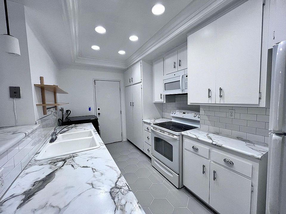 Rarely available and recently remodeled 1110 square foot 2 + 2 luxury condo offers a spacious living/dining room with high ceilings, crown molding and balcony. Unit includes large bedrooms and ample closet space, as well as air conditioning and an in-unit washer/dryer. Light and bright with new kitchen tile floors and kitchen counters. Quiet building features secure entry with elevator and two individual parking spaces (not tandem). Unit also includes additional walk-in secure storage unit/space 4w x 7L x 8H. 1 mile south of Cedars Sinai Medical Center. Walking distance to shops and restaurants on South Robertson Blvd and La Cienega Park. Owner pays for trash, sewer and water. Tenant responsible for power. Additional pet deposit of $250.