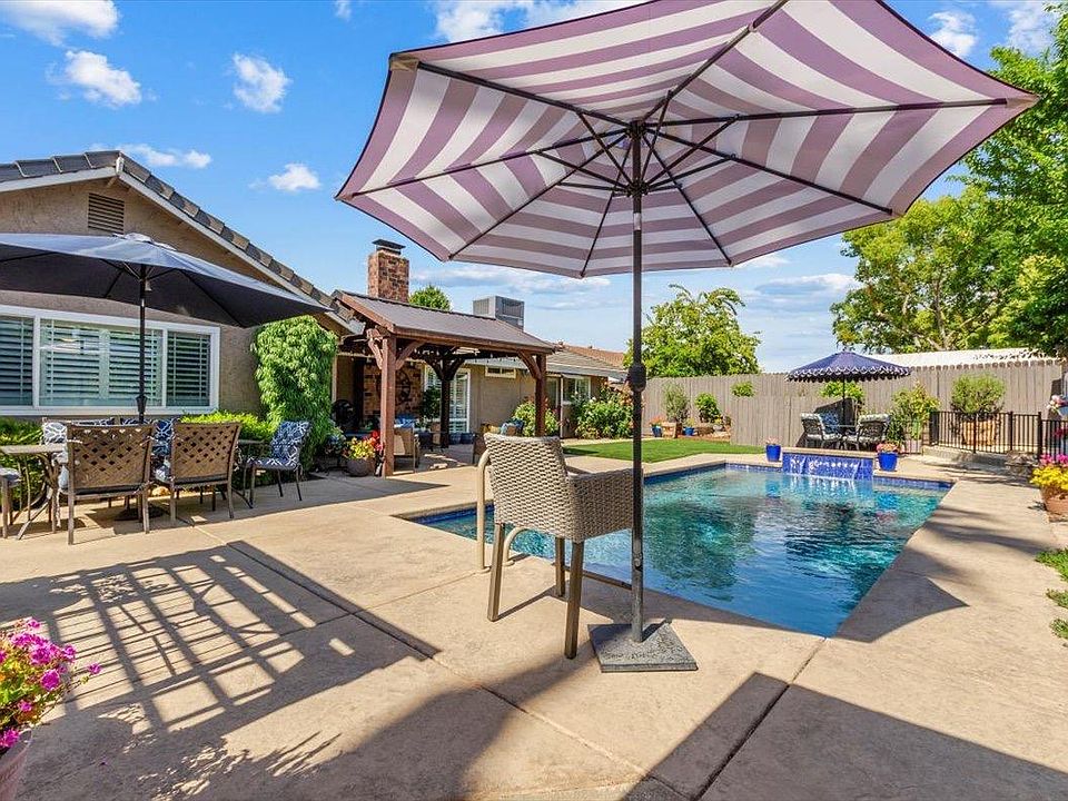 Welcome home to this extensively updated Guttridge home offering a truly convenient lifestyle. Owned solar panels w/ average monthly electric bill around $105 (during the summer, around $50 to $60). Two driveways, one with a 30amp RV plug, perfect for all your parking needs. 2021- Replaced Water Heater & painted exterior. 2022- Installed a new HVAC & sparkling heated pool for endless hours of enjoyment year round. Inside, the home features engineered hardwood and Porcelain tile floors, creating a sense of elegance throughout. The kitchen has high-quality stainless steel appliances, while the Plantation shutters add a touch of sophistication. For cozy evenings, you'll love the electric fireplace insert with remote control, creating a warm and inviting atmosphere. Both the kitchen and bathrooms boast Hi-Mac counters resistant to scratches and stains. The backyard has a covered patio and an additional Pergola, providing the perfect spaces for outdoor entertaining or relaxation. In the Orchard you'll find Peach, Apple, Plum, and Orange trees. Both the front and back yards have been updated with low maintenance landscaping. Don't miss the opportunity to make this stunning Guttridge home your own and experience the ideal blend of comfort, convenience, and modern living. See the 3D tour