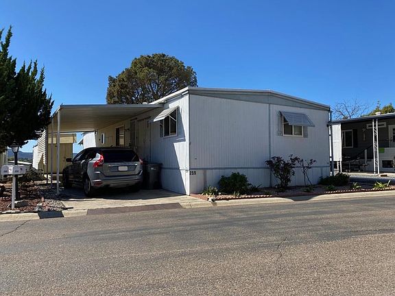 No property taxes = big savings to you! Under $100 a year for registration. This home was originally a 3 bedroom home. One bedroom was converted into a den; you could add a closet and make it a bedroom again. Fantastic split-floorplan with the main bedroom/bathroom at one end of the home; the second bedroom, den and guest bathroom at the opposite end. Large kitchen with ample cabinetry/counter space. Large living room facing the view side. The dining room features a built-in China hutch with lots of storage space. On the view side, there is a covered porch; this is the perfect spot to enjoy your morning coffee or just sit and enjoy the outdoors. Covered carport, storage shed and central A/C. Great location toward the upper part of this amazing senior community. This home is on Shirley Ln. Interior pictures will be posted soon. Camerons Mobile Estates is a highly desired 55+ community; it offers its residents many amenities including a heated swimming pool, a stunning clubhouse, a library, pool tables, and much more. This oasis is located with easy access to Hwy 67 & 52. There is an abundance of shops and restaurants in Santee. Costco, Walmart, Target, Home Depot, TJMaxx, Macy's, and so many other stores near by. $1,040 lot rent.