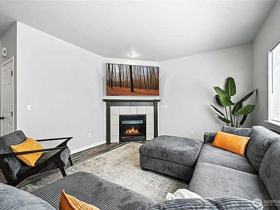 Don’t miss this updated and move-in ready 3-bedroom + den home! Recent updates completed in the last few years include fresh interior paint, carpet, stylish vinyl plank flooring, window coverings and newly redone lawn & patio. The soaring ceilings and open layout set the stage for gatherings, while the cozy living room fireplace brings warmth and comfort. Enjoy the refreshing AC on those hot summer days. The upstairs primary suite offers a large walk-in closet and private bath, joined by a loft and two spacious bedrooms. Convenient upstairs laundry room. Step outside to your fully fenced backyard retreat with direct access to scenic neighborhood walking trails. All this in a prime location close to shopping, dining, and JBLM. Welcome home!