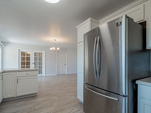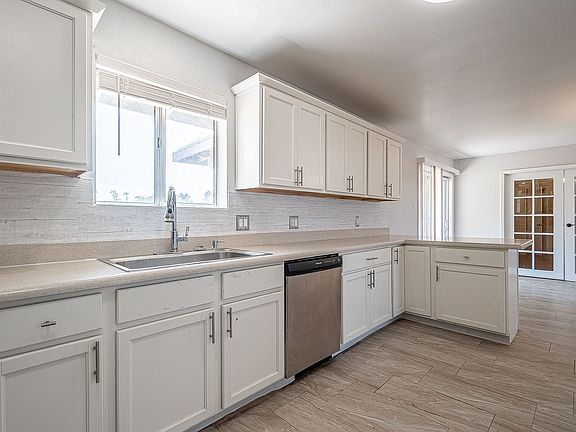 Acreage Rental! 4 bedroom, 2 bath with 2 car attached garage. Updated home with ceramic floor tiling throughout, large living room, dining room and kitchen area. Large area off of the kitchen for use as a pantry. French doors lead to covered rear patio area and grassy acreage with mature fruit trees. Acreage welcomes large animals and is irrigated.