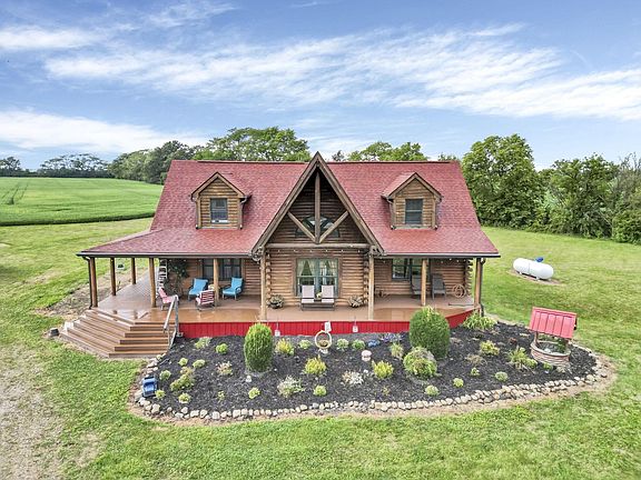 Escape to your own private retreat in this stunning log home, perfectly nestled on over 10 sprawling acres just a short distance from Deer Creek Lake. Built in 2004, this home offers a unique blend of rustic charm and modern convenience, with a prime location that's only 30 minutes from the new Honda plant and 23 minutes from Grove City.