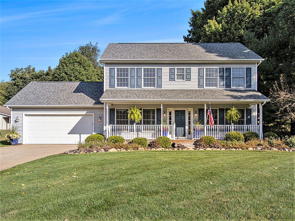 Nestled in an area of fine homes is this quality built traditional 2 story. Quality items adorn the finish of this home: Anderson Windows,Kitchen update done by The Kitchen Shop featuring soft close cabinetry,solid quarter sawn oak floors on main level,and new carpet in all bedrooms. Set off with french doors on main level is a sizable room that could be an office, playroom, formal dining area, den or 4th bedroom. Expansive covered front porch,professional landscaping, and 22x22 Storage shed complete the exterior. Enjoy the privilege of a private community's amenities of well maintained roads, beautiful green spaces, and walking trail. Mattawan schools with immediate occupancy!