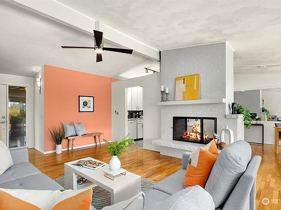 Mid-century enthusiasts rejoice, your search is over! Designed to please, this right-sized single-level home offers a minimalist profile from the street, and inside reveals a wall of windows to take in the Puget Sound & Olympic Mountain views. Sunset cocktails on your garden deck will be the place for friends to gather this summer. Pamper yourself at days end in the primary suite offering walk-in closet & spacious attached bath. Open floorplan with vaulted ceilings & double-sided fireplace offers a light & airy showcase for your mid-century decor. Hard-to-find attached 2-car garage. Always-popular Olympic Manor offers protective view covenants, sidewalks, outrageous holiday light displays & the most popular Halloween route in town.
