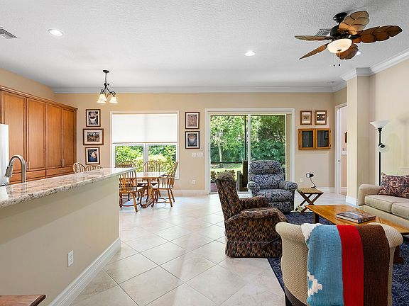 This lovely home, with two bedrooms plus a den and two baths, sits on a lushly landscaped private home site.Features include impact windows,stained glass sidelite at front entrance,hi-hats,fans, designer window coverings,upgraded baths,screened porch and more!Open floor plan.Tile has been installed on the diagonal throughout the main living areas.The gourmet kitchen features wood cabinets,granite countertops,built-in pantry cabinet and lots of storage.The master suite has hi-hats,fan with light and two closets including an outfitted walk-in closet.The luxurious bath has dual sinks and a large shower with tile to the ceiling and listello.There is a covered,screened porch and large yard.You'll love this luxury 55+lifestyle community with large clubhouse and great recreational facility. Valencia Cove is a premier 55+ lifestyle community featuring a spectacular 39,000 square-foot clubhouse and 10 acre outdoor recreational facility. Endless activities and opportunities for fun abound - there are activities, trips, shows, and clubs of all types. The clubhouse features an expansive foyer and lobby, grand ballroom with raised stage and dance floor, four spacious card rooms, Cafe with indoor/outdoor seating, Arts and crafts room with kiln, Internet/Billiards room, Office, Catering kitchen with separate demonstration cooking studio, Yoga & exercise studio with ping pong, fully equipped fitness center and men's and women's locker rooms with steam rooms, massage room and showers. There are four pools - a beautiful Resort-style pool and Shade Pavilions, Lap pool with Swimmers' Lap Lanes, Resistance walking pool, Grandchildren's wading pool, and an Outdoor whirlpool spa. There are eight har-tru tennis courts with shade pavilions and lighting for night play, tennis pro shop, tennis pro, league play, four pickleball courts (two more will be built) with lights, pickleball pro, league play, 2 bocce courts, league play, half-court basketball and walking/jogging/biking paths throughout and just outside the community. Valencia Cove is conveniently located near shopping, restaurants, houses of worship and major highways!