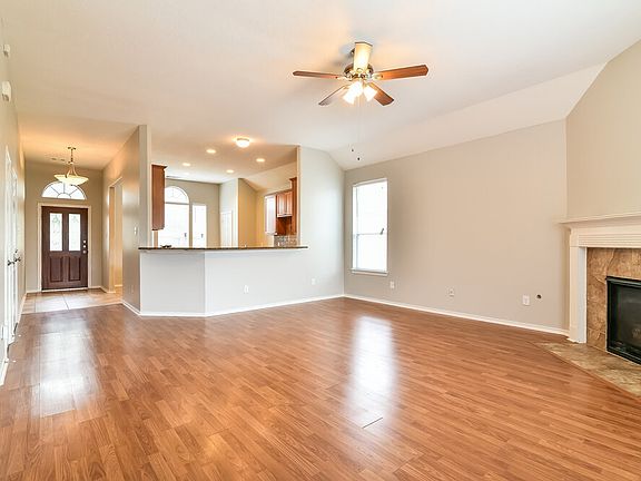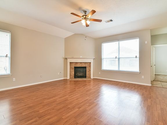This gorgeous brick Humble rental home includes three bedrooms and two bathrooms in its spacious ranch-style floor plan. Hardwood flooring, a ceiling fan, and an expertly crafted gas fireplace greet you in the living room of this beauty. The inviting kitchen boasts tile flooring, a pantry, stainless steel appliances, granite countertops, and a tile backsplash. Relax in style in the master suite with plush carpeting, a ceiling fan, a walk-in closet, and a bathroom with dual vanity sinks, an oversize garden tub, and a walk-in shower. In addition to a two-car garage, this house features a patio and a fenced backyard. Apply for this move-in-ready home today.