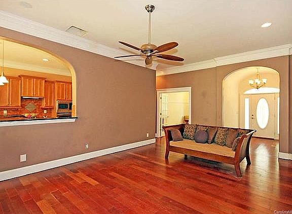 Spacious, custom home in Desirable Location! Large rooms, Beautiful Granite and kitchen, Stainless appliances. Brazilian Cherry wood Flooring. Stone Fire Place. Upstairs Bonus room has a wine cooler. Home is placed perfectly with mature trees surrounding, Allowing for privacy. Covered back porch is the owners favorite place to relax. View of the Lake from the property (not the house) minutes from Lake access. Close to all shopping, interstate and Charlotte.