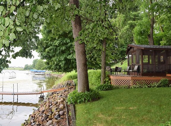 134' of lakeshore on Reitz Lake! 4 bedroom, 3 bath walk-out story & a half features brick fireplace, master suite includes private 3-season porch with deck, full bath & two large walk-in closets. Heated shop & huge decks to relax. Lakeside 12x12 screened cedar gazebo with wrap-around deck to enjoy the lake views. 11 flower gardens and a rain garden (DNR planted 2,000+ MN native wild flowers). Great location, beautiful views & close to town - it's all here!