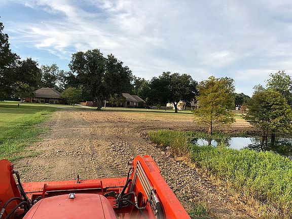 1.5 acres, stocked pond, house pad built, water and gas, 3 large live oaks, culverts installed, land built up over 150 loads of dirt. Ready to build!