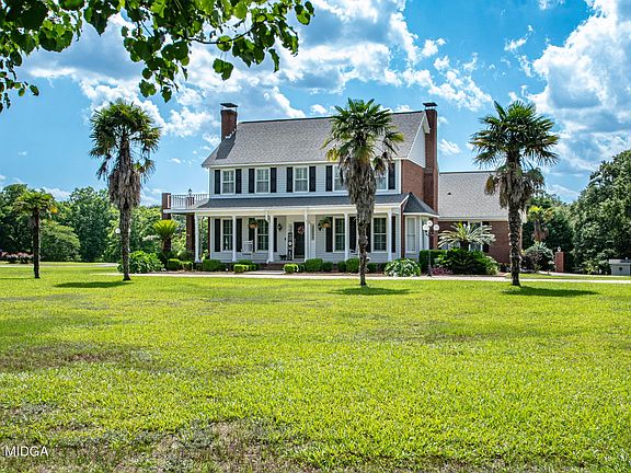 Come home to this lovely, one of a kind property in Vienna GA. approximately 5 minutes from I-75. Far enough from the city, yet close enough! Rocking chair front porch greets you in this 3 bedroom, 2 and a half bath 2,911 sp ft home. There is an extra large game or sunroom, that is heated and cooled on the main level but with its own split unit. There are 2 fireplaces (one wood in the keeping room and one propane in the living room), heart pine floors throughout the main level and tile with pine inlay in the foyer and kitchen. Main level boasts a living room (w/built in shelving), formal dining room, keeping room, office and kitchen with an island (and a Jenn-Air stove), large laundry room with a huge pantry space, a half bath and the sunroom. Upstairs is the primary bedroom with a lovely ensuite (with jet tub) and opens to a large deck that overlooks the nearly 3 acres of beautiful, landscaped grounds. The other 2 generous sized bedrooms are upstairs, as well as a full guest bath. The home has a soft water system, a tankless hot water system, new HVAC in 2023 and new windows in 2024. Landscaping is meticulously maintained and is lovely with specialty lighting all around the home, a screened gazebo with ceiling fan and an 18 foot diameter above ground pool. The back acre of the property is fenced and would accommodate horses, goats, etc. Last but not least is the huge workshop that's just under 1,000 square feet. You won't regret coming out to view all this home has to offer.
