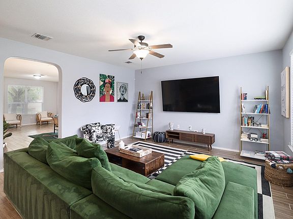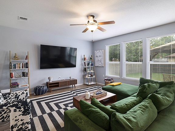 Beautifully updated South Austin home featuring 2790 square feet with 3 large bedrooms, 2.5 bathrooms, and tons of living and dining space. Massive flexspace upstairs can serve as additional living room, playroom, office, or theater. Big, private backyard with a covered patio is perfect for entertaining. No carpet downstairs for easy maintenance. So much counter and cabinet space in the kitchen, as well as stainless steel appliances. Fridge, washer, and dryer convey with the property. This wonderful community has all the amenities you want including neighborhood pool and covered playgrounds so the little ones don't overheat during the summer. Close to schools, parks and shopping. Come see it today!