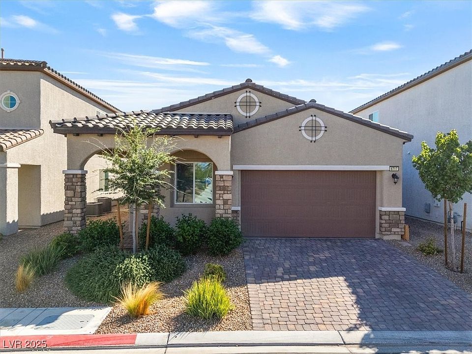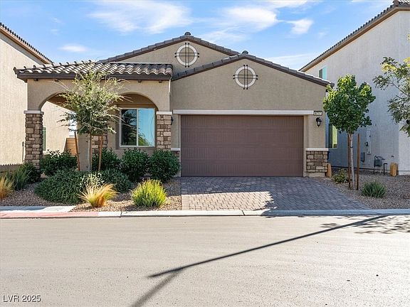 Beautifully maintained home in Southwest, Las Vegas next to Rhodes Ranch! Features include 10ft ceilings, quartz countertops with island, gas cooktop, plenty of cabinets, tile & LVP flooring, and a covered patio. Enjoy energy savings with leased solar. Prime location near Durango Casino, UnCommons, freeway 215, shopping, dining & more—a perfect blend of comfort and convenience!