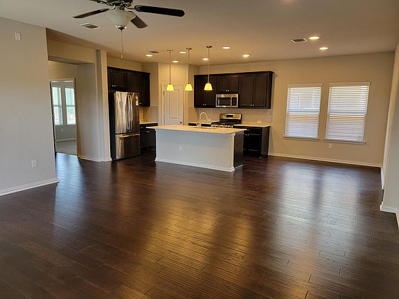 Goodnight Ranch custom living! Come see this beautifully modern open-concept floorplan with 3 beds, 2 baths - it shows LIKE NEW! Warm hardwood floors, dark cabinetry, neutral walls and high end finishes give this home a very luxurious feel. Home office or flex space located off the entry is great for the remote / virtual worker. Spacious dream kitchen great for entertaining features island workspace, breakfast bar, large walk-in pantry, and stainless steel appliances. Master bedroom has a large dressing closet and luxurious en-suite bath with separate vanities, walk-in shower and deep soaking tub. Location is everything! This gem is within walking distance to Blazier Elementary School and the community amenity center, which includes a swimming pool, park and playground. Just minutes away from the Southpark Meadows shopping center, and less than 10 miles to downtown Austin for work or an evening of dining and fun. Criteria Overview: Gross monthly income: 3x the monthly rent per month. 3 years positive rental or mortgage payment history. Credit Score of 600 or above Pets: Cats, dogs ok, max limit 2. Breed Restrictions, max weight is 35lbs. Pet deposit $500; Pet rent monthly: $20; One-time Pet fee $300. This applies to each pet. Tenant pays all utilities and lawncare. Owner pays HOA fees.