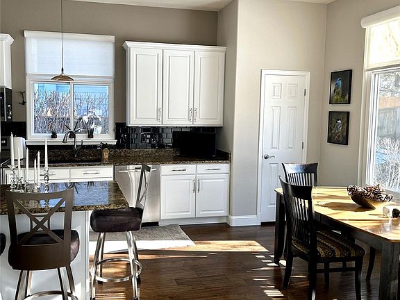 Beautifully maintained and updated ranch home set on a gorgeous lot in Highlands Ranch. Main floor is low maintenance engineered hardwood floors with 10 foot ceilings. The great room features large windows and a 3 sided fireplace, flowing into the dining room and kitchen with newer Kitchen -Aid appliances. Main floor also includes a laundry room, and off the hallway is the main suite, 2 other bedrooms and a full bath. Roof new in 2021. Stone walkway to backyard. Retractable awning over patio. All the windows and front door including sidelights and top window, have all been upgraded from builder quality. Maintenance free deck done in 2021.