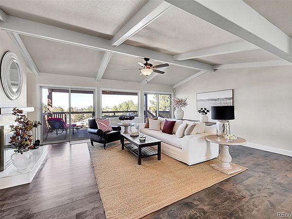 Inside, the home is equally impressive. The interior shines with newer window treatments, fresh paint, new carpet, and stunning hickory hardwood floors. A chef’s dream kitchen awaits, beautifully remodeled with high-end finishes, striking slab quartz countertops, premium KitchenAid stainless steel appliances, dual-convection oven with glass cooktop, and ample counter space for creating culinary masterpieces. The open kitchen layout with its own adjacent fireplace and central island makes for a perfect gathering spot with loved ones. The bathrooms have also been thoughtfully renovated to provide a modern, spa-like experience. The master suite with a remodeled bath, boasts a free-standing tub, exquisite marble shower and countertops and views that will take your breath away. The main living area with its soaring arch ceiling features a cozy, double-sided fireplace, casting warmth and ambiance throughout the living room and dining room spaces —perfect for Colorado’s cooler nights.