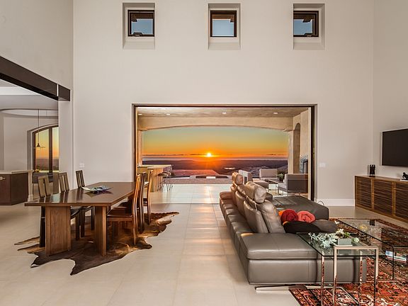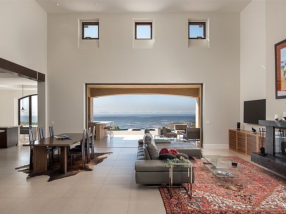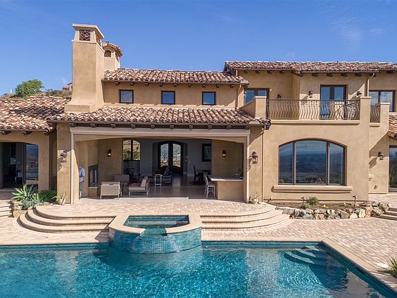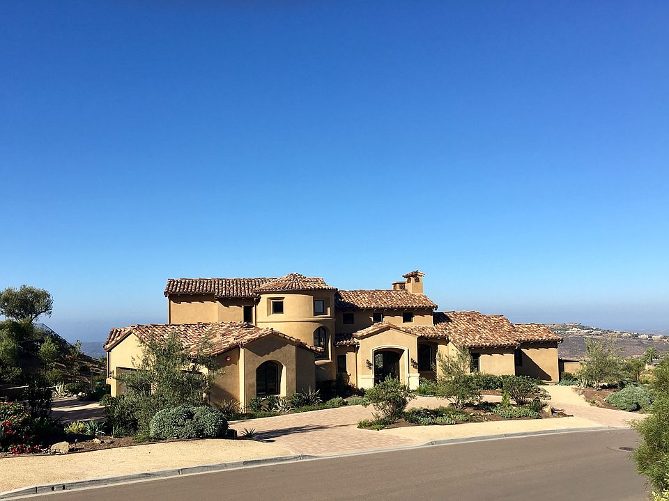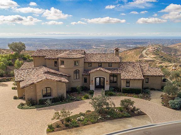Almost new...classic soft contemporary style custom home located in the award winning community of Cielo in Rancho Santa Fe. Enjoy the ultimate privacy with 180 degree panoramic views to the Pacific Ocean encompassing vibrant sunsets from nearly every room. Artistically designed with custom glass and porcelain tiles, European oak brushed hardwood floors, and exceptional details throughout, this five bedroom, four and one half bath residence features an open floor plan with an abundance of warmth and charm. A spacious state of the art kitchen features all professional appliances, macaubas quartzite leathered counters, designer tiled back splash, large center island, walk-in pantry and a breakfast nook with large windows overlooking the sun-drenched pool and spa and spectacular views. The kitchen is open to the great room with stone fireplace and walls of glass that open to the outdoor living room with fireplace and summer kitchen…..the ultimate venue for year round indoor/outdoor entertaining. The first floor master suite has a corner fireplace detailed in stone and a wall of doors capturing the expansive views. The master bath is better than any five star resort with spa tub, oversized shower and a custom designed dressing room. There is an additional room adjacent to the master….perfect for a nursery, office or exercise room. There are two additional well-appointed bedroom suites on the first floor and two on the second floor with a bonus room that leads to an oversized outdoor veranda. Outside one can enjoy the custom zero edge pool with spa with plenty of room for sunning, lounging or dining. Wine room. 3 car garage. An exceptional home at an exceptional value!