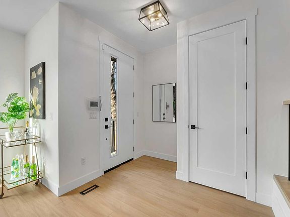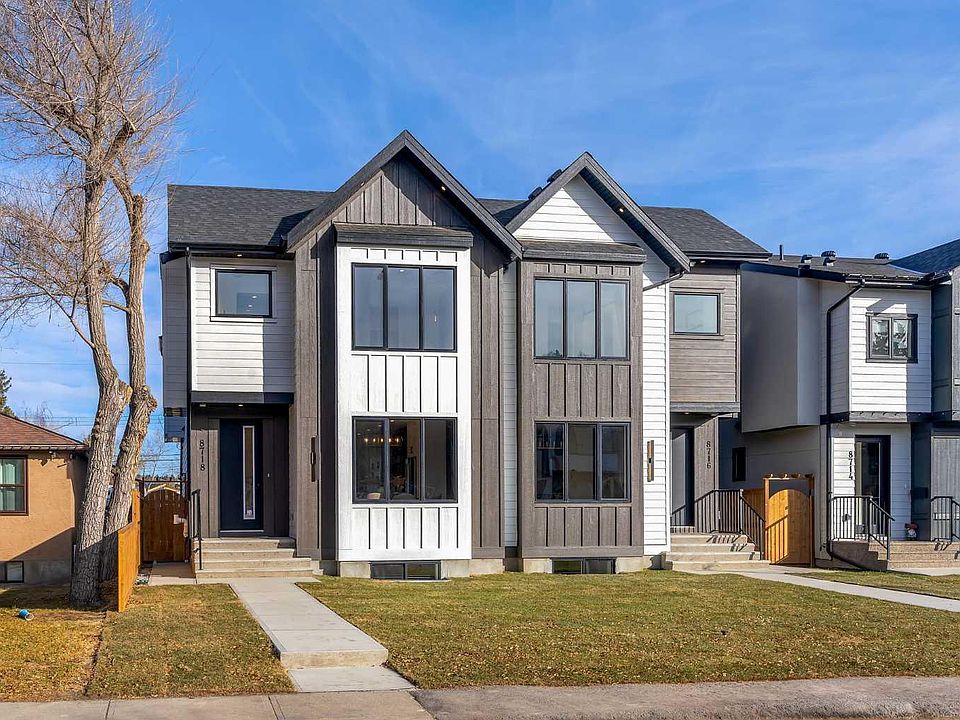 Discover the epitome of modern living in this impeccably located home! Nestled on a quiet street, steps from Bowness Park and next to a school, this 5-bedroom, 3.5-bath residence offers over 2800 sqft of luxury. The home showcases countless upgrades, including a CUSTOM UPGRADED QUARTZ BACKSPLASH throughout. The gourmet kitchen features a stainless steel KitchenAid package with built-in wall oven & microwave, double-door fridge with waterline, dishwasher, custom canopy hood fan, plus a large island with custom slat design and quartz waterfall, pantry, pull-outs, quartz counters, under-cabinet lighting, and custom cabinetry. The main floor also includes a formal dining area, living room with custom built-ins & fireplace, and a designer mudroom with bench & storage. Upstairs, you'll find two spacious bedrooms, a laundry room with sink, a full bath, a bonus room with 10ft tray ceiling, and a luxurious master retreat with 10ft tray ceiling, a vast custom walk-in closet, and a spa-inspired ensuite featuring a freestanding tub, double vanity, and custom-tiled shower. The fully developed LEGAL basement suite offers spacious open-concept living with a bright living room enhanced by a large window, a dining area, and a custom kitchen complete with quartz backsplash, microwave hoodfan, breakfast bar, and ample counter space. It also features two large bedrooms, stacked laundry, and a full bathroom with a tiled surround shower. Exterior highlights include custom concrete steps, walkways, and patio, full landscaping, new fencing, BBQ gasline, and a private backyard area designed for basement tenants to enjoy. Additional features: 9ft ceilings on all levels, 8ft doors, flat painted ceilings (main & upper), knockdown basement ceilings, smart home wiring, upgraded lighting, custom faucets, central vac rough-in, AC rough-in, and CAT 5 wiring. A true blend of craftsmanship and intelligent design, this home is a must-see. Don't miss this opportunity—next door unit 8718 is also available!