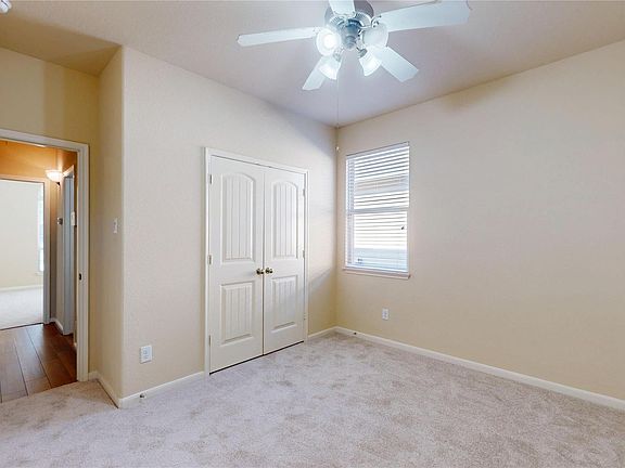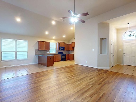 Beautifully maintained single-story home in Saddlebrook Ranch featuring 3 bedrooms and 2 baths. The open split floor plan offers high ceilings and great natural light. The kitchen boasts tile floors, ample cabinetry, a tile backsplash, and stainless-steel appliances, including a gas range and dishwasher, flowing seamlessly into the breakfast and family areas. Enjoy a spacious primary suite with soaking tub, separate shower, dual sinks, and walk-in closet. Two secondary bedrooms feature new carpet and share a full bath. Step outside to a covered patio and landscaped backyard with a full sprinkler system. Conveniently located near Creekside Village Green and the Grand Parkway, offering easy access to shopping, dining, and entertainment.