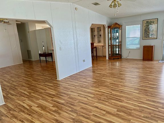 Leave those snow shovels behind and come live the dream in sunny Florida! This well-maintained home features lots of room to entertain! As you enter the front door, you notice the expansive living area, full of natural light. The dining area is located in between the living area and the kitchen, so entertaining is a breeze! The principal suite features a walk-in closet, as well as an en-suite bathroom. A screened in porch conveniently located on the side entrance leads to the storage room/laundry area. Some furnishings convey with the sale. Lot rent will be approximately $1,460 for the new owner. Seller is offering to pay 3 months lot rent for new buyer, with acceptable offer. The lot rent includes use of the amenities, taxes, cable and internet. Sun Key Village boasts a heated swimming pool, community lake, shuffleboard, pickleball, cornhole, micro golf, billiards, library, fitness room, clubhouse and more! There are many activities, dinners, social clubs and celebrations to keep you entertained. Pets under 20 lbs are allowed. While deemed reliable, all listing information and property specifics should be independently verified by potential buyers or interested parties. Buyers are encouraged to perform their own due diligence and obtain verification through personal inspection or qualified professionals.