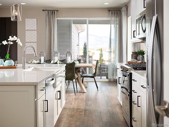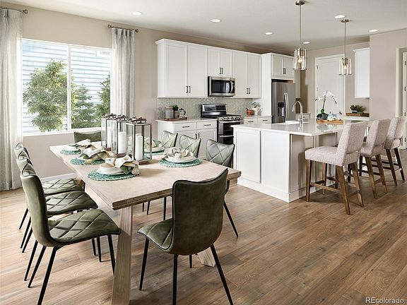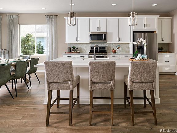 Under construction and ready for a Nov/Dec move-in! The kitchen features stainless Whirlpool appliances, gas range and contemporary white cabinetry. Open great room with a fireplace and siding glass doors that lead to the covered patio. Natural wood-look laminate plank flooring throughout most of the main level. Spacious primary bedroom suite with large shower and walk-in closet. Additional features include, full basement with a finished rec room, bedroom and bathroom, professionally landscaped front yard and home technology package.  Located in the amenity rich community of Sterling Ranch! Sterling Ranch boasts 30 miles of trails, prolific open space, educational gardens, town center, civic center, recreation center with pool, clubhouse and fitness center, plus so much more! Instead of a traditional HOA, Sterling Ranch has a Community Authority Board (CAB) that operates like an HOA. The majority of the community costs are paid through property taxes, however, please visit the Sterling Ranch CAB website for retailed information on the additional quarterly and monthly fees (https://sterlingranchcab.com/). Taxes are TBD - taxes are currently assessed on land value only, so the amount shown is an approximated based on the purchase price and tax rate. Est. annual taxes are approx. 1.22% of purchase price.
