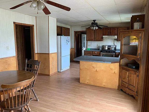 Farm/Ranch style home with attached garage and Large Barn. Septic and well along with a water spout down close to barn. It has a large deck with wheelchair accessibility. Comes with a Panty and inside stairway to basement. Propane/Wood furnace for heat. 5 bedroom with a Kitchen dining room and living room along with a large nook leading to north side bedrooms. Metal roof installed in 2012, re-roofed garage and breezeway 2022. Has 30 acres of tillable land.