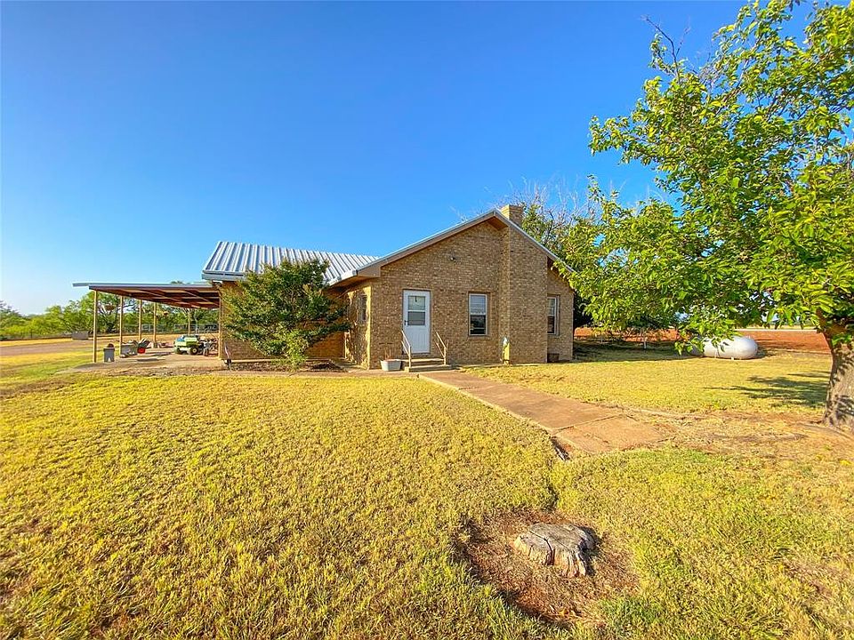 Large Farmhouse on 12 acres, on blacktop, and just 2 miles from US 277. The property is partially fenced, has a large metal shop and additional storage buildings. The home is brick with a metal roof, oversized carport, and an excellent outside entertaining area. Home allows for a formal living room, dining room, sunken den, four bedrooms, and two bathrooms. The kitchen is located at the heart of the home and has wonderful cabinetry. Bonus areas include a welcoming screened-in porch at the front of the home as well as a large screened-in porch at the back of the home perfect for afternoon tea.