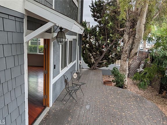 Enter through double doors into an inviting living space featuring gleaming wood floors that flow from the entryway through the open living and dining areas. The modern kitchen boasts quartz countertops and newer cabinetry, durable tile flooring and comes fully equipped with a refrigerator and microwave for added convenience. Just beyond, a flexible room serves perfectly as a family room, home office, or entertainment area, adjacent to a full bathroom with glass enclosure. Upstairs, discover three generously sized bedrooms with wood flooring, ceiling fans, and plenty of natural light. The updated end of hallway, full bath features elegant tile finishes, a soaking tub, pedestal sink, and custom beveled mirror. A separate laundry area, ample storage, and recessed lighting throughout add ease and comfort to daily living. Not to be missed is a recently renovated full tiled wall standing shower with sliding glass enclosure. Additional highlights include, dual-pane windows, Private raised wood deck and herb garden with newer wood fencing, Assigned parking within a private community. Experience the best of Silver Lake living, space, thoughtful design, and a prime location close to trendy cafes, shopping, and recreation. Available now make this your next home.