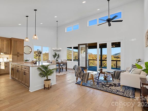 Amazing opportunity to purchase this new build with massive views from almost every window! This open floorplan has been upgraded with 8 foot doors, casement window and extra high 15' ceilings for a spacious and modern feel. Kitchen features stainless Frigidaire Professional Series appliances, gorgeous granite countertops that match perfectly with the hardwood floors and maple cabinets. Full of natural light, the floorplans flows right out onto the oversized back porch with Eastward long range mountain views full of fall colors. Porch was upgraded to Trex decking, tongue-and-groove ceiling with lighting and fans, and high tension wire railing to maximize views and impress your guests! Spacious primary suite on main floor comes equipped with a large en-suite bath featuring walk in closet, double vanities and generously sized walk in shower. Upstairs you'll find another incredible full bath that services both guest suites, more long range mountain views and of course both bedrooms have walk in closets. Outside you'll find plenty of parking and a gently sloping lot giving you useable yard space for entertaining, expanding, or just playing fetch with the family dog. Large crawlspace is perfect for storing all your outdoor toys and is accessed from the back yard. Don't miss the chance to own one of Boxwood Homes most sought after floorplans WITH the upgrades that make it a screaming deal at this price point. Walk to downtown Canton only 1 mile away, and only a 20 minute drive to downtown Asheville your gonna love this location!