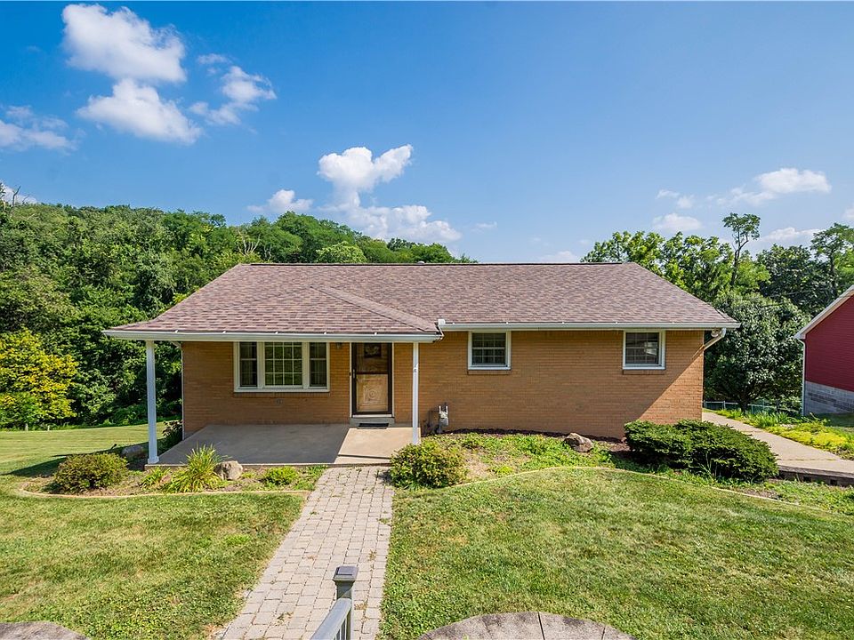A classic brick ranch home with two lots gives you the freedom to spread out, garden, or simply enjoy your slice of the outdoors! A covered front porch welcomes you home. Inside, hardwood floors flow through most of the main level, leading you to a bright and airy living room—perfect for unwinding after a long day. The roomy, eat-in kitchen is ready for your favorite recipes and mealtime memories. The primary bedroom offers the convenience of a private half bath, while two additional bedrooms and a full bath complete the main floor. The finished lower level expands your living space with a game room, laundry area, and an extra room for your needs, whether that's a home office, hobby space, or storage. A large rear deck overlooks the wooded view and is perfect for morning coffee or evening gatherings. Recent updates include a brand new roof, with newer windows,& deck. A concrete driveway & additional parking spot provide off-street parking for your family and guests. Gas rights convey!!