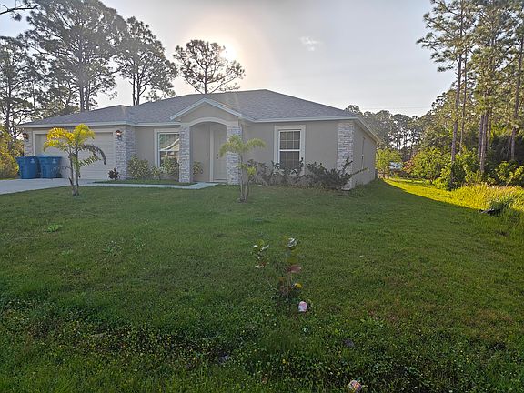 New Tenant Wanted! Newer (2022) Concrete Block Stucco home in SE Palm Bay minutes from Bayside Lakes available NOW! 3 beds, 2 baths, and a bonus room/office! The backyard oasis features a fruit-filled garden and flower/vegetable beds, plus a well and septic system for self-sufficiency. Built-in pest control ensures a serene living environment. Indulge in the luxury of a high-energy-efficient home with a screened porch and a master suite boasting a walk-in glass door shower. The guest room pampers with a soaking tub. The kitchen is a chef's delight with tall cabinets and a sizable pantry.