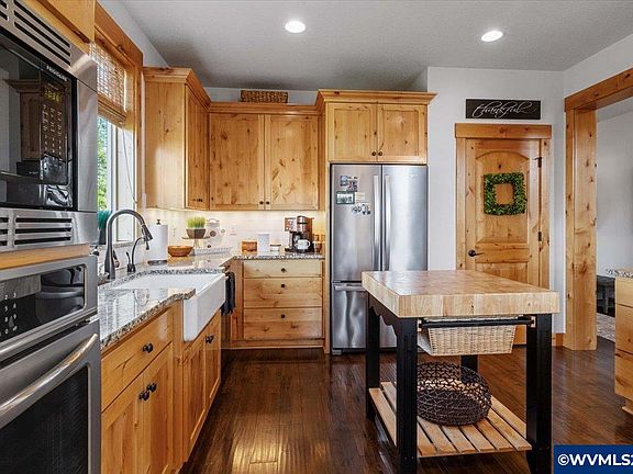 Beautiful home on a lot and a half in a quiet cul-de-sac offering high ceilings, knotty alder cabinetry with under-cabinet lighting. Boasting an expansive 2,318 square foot garage with an RV bay and clean-out. Enjoy a small orchard and backyard that backs to green space for added serenity. A rare opportunity to own a home with thoughtful features and upgrades throughout. LA is related to seller.