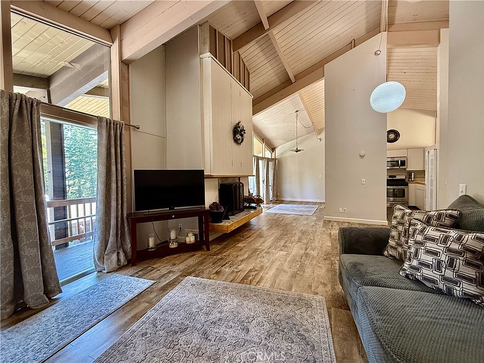 Escape to your dream mountain retreat! This open and spacious three-bedroom, two-full-bath townhome is perfectly situated in the highly sought-after Lake Arrowhead area, offering the ideal blend of comfort and natural beauty. Step inside and be greeted by a grand vaulted ceiling with a skylight, creating an airy and inviting atmosphere. The heart of this home is the large fireplace, perfect for cozy evenings with loved ones after a day of mountain adventures. Expansive windows and sliding glass doors flood the living spaces with natural light and lead out to two generous decks, where you can savor the crisp mountain air. With its great architecture and thoughtful layout on two levels, this townhome offers ample space for both relaxation and entertaining. Beyond your doorstep, you'll have access to community amenities, including a refreshing pool, perfect for staying active and connecting with neighbors and friends. Plus you’ll enjoy ample parking reserved specifically for this unit! Whether you envision full-time mountain living or a cherished getaway for holidays and long weekends with family and friends, this exceptional townhome provides the perfect backdrop for creating lasting memories.