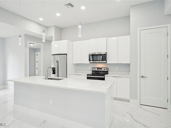 Welcome to YOUR brand new home with open floor plan that feels spacious from the moment you walk in thru the oversized French doors. Creating a perfect space for family and entertainment, the modern kitchen featuring a large waterfall island with stainless steel appliances, white cabinets and ample storage. This residence offers three bedrooms plus den, boasting three full baths and a two-car garage. Master suite features his/hers walk-in closets, dual sink, tub and shower. Prime location, minutes away from fine dining and shopping, also very close to the stunning beaches of Fort Myers.