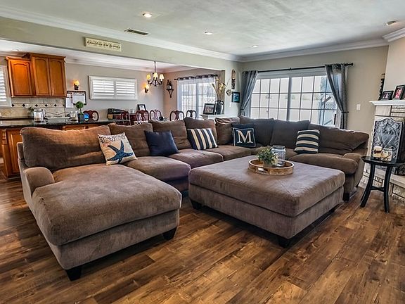 Looking for the right place to call home? This is the perfect family home in College Park Estates, and it has just had a huge price improvement. The curb appeal on this home is unparalleled with stacked stone accents welcoming you in with the cute porch. Once inside, you will love the open floorplan with a large living room that includes a cozy fireplace; recessed lighting and newer flooring. The living room flows nicely into a kitchen made for family meals with an oversized island and black granite countertops. Guest bath has a beautiful, brand new birch vanity with white quartz counters. Other upgrades include plantation shutters, crown molding, ceiling fans and HVAC. Sliding glass doors from the living room and from the master bedroom lead out to the backyard with a hardscaped patio and stacked stone fireplace- perfect for entertaining, don't forget the spacious side yard as well! There is a gate in the backyard with access to the wide open area which is perfect for dog walks. Short walk to the College Park park with recreational sports and movies in the park. The sellers have positioned this home to sell!