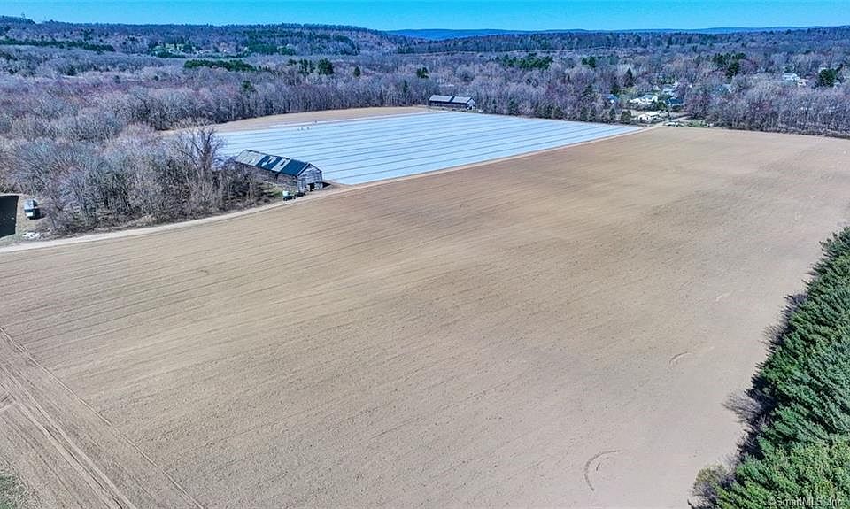 This 280 acre property is located in Windsor and East Granby. The property has been farmed for many generations in tobacco and row crops. The property has approximately 90 acres open in fields with Merrimac fine sandy loam and Windsor loamy sand, two of the finest agricultural soils. There are 3,361 feet of frontage along the Farmington River and 1000 feet of frontage along Stone Road in Windsor and 816 feet of frontage along Spoonville Road in East Granby. There are 8 tobacco barns on the properties in various conditions. Most of the land is classified under current use in CT. Current agricultural lease income is $43,050 from April to December from a local farm family. $500/ac for tobacco, $300/ac for vegetables, and $750 per tobacco barn for three barns and $3000/yr for farm workshop with fence enclosure. Annual property tax is $25,974.