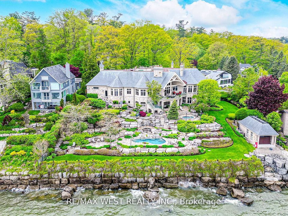 Anchored On More Than Half An Acre Of Riparian Shoreline, Ville Vue Estate Blends Resort Serenity With City Glamour, Offering Uninterrupted Toronto-Skyline Panoramas From A Rooftop Driving Range And Cascading Limestone Terraces That Descend To A Heated Pool, Spa-Style Hot Tub, Twin Stone Fireplaces, And Manicured Gardens. Behind Its Four-Car Gallery Garage, The Sprawling 7,700 Sq Ft Bungalow Marries Old-World Craftsmanship, Think African-Mahogany-Paneled Library With Hidden Wet Bar Yet Still Has Modern Openness, A Culinary Showpiece Kitchen, Grand Dining Salon, Sun-Soaked Great Room, And An Owners Wing Featuring A Private Office, Fitted Dressing Room, And Spa Ensuite, Also Opening Directly Onto The Lakefront Terrace. The Entertainment-Rich Lower Level (Complete With Wet Bar, Climate-Controlled Wine Cellar, Cinema Lounge, Billiards Zone, Professional Gym, And Convertible Guest Suite) Ensures Every Gathering Is Memorable, While Thoughtful Luxuries Such As Main-Floor Laundry, Mudroom, And Abundant Storage Make Daily Living Effortless. From Sunrise Paddleboarding Off Your Own Property To Sunset Cocktails Beside The Waterfall, Ville Vue Delivers An Unparalleled Lakefront Lifestyle. By Private Appointment Only.